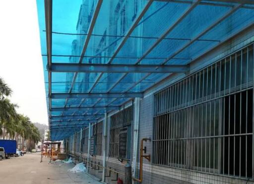 PC板檔雨棚,PC板雨棚案例不論安裝什么款式什么樣的擋雨棚,大家都希望能夠用的時(shí)間長(zhǎng)一些,使用期間不要出現(xiàn)老化、變色發(fā)黃、生銹、開(kāi)裂、漏水等問(wèn)題,都想擁有一個(gè)使用體驗(yàn)感滿分的擋雨棚。我們知道,擋雨棚除了擋雨,其實(shí)還面臨著每日暴曬陽(yáng)光的情況,擋雨棚不僅要能夠擋雨,還要能夠承受住紫外線的傷害,這樣才可以減少